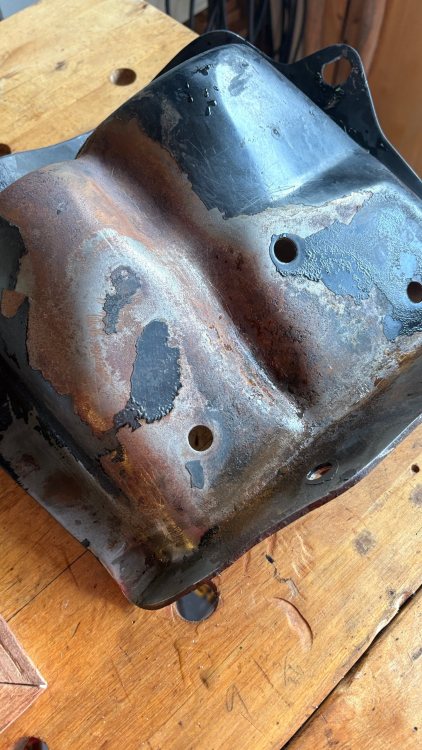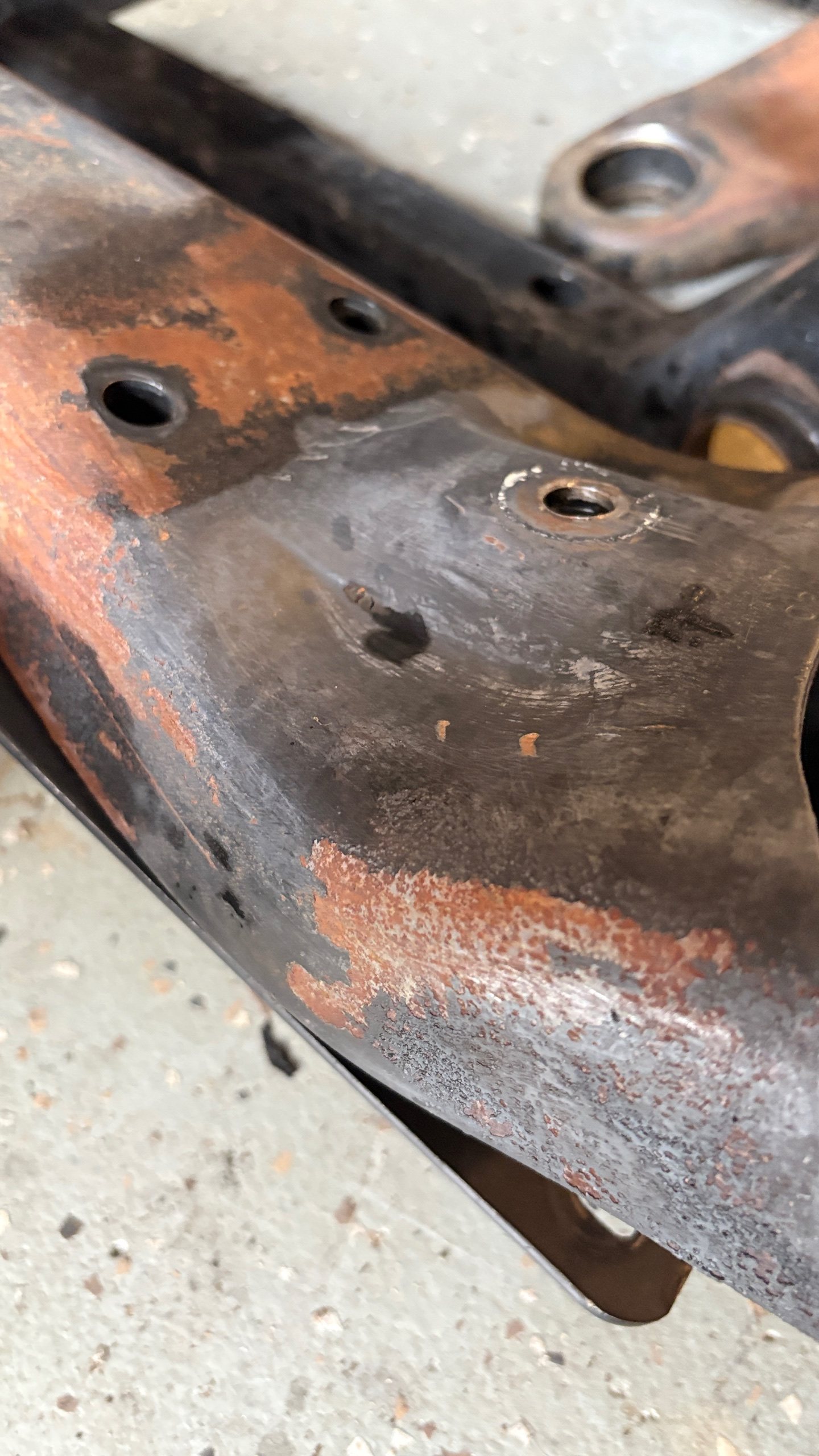 Today, I started prepping all of the front end parts I have removed from my project in order to do the 3 step system with Rust Seal. After one pass with KBS Klean in order to just remove all of the built up grime and dirt, I noticed many parts have a black coating on them that is partially coming off already. I'm unsure if it's original paint or an undercoating of some kind. See photos for an example of what the coil mount and radius arm looks like after a pass of KBS Klean, scraping and using a wire wheel to clean all of the grime and loose rust and black coating off. Do you think the leftover black coating will be a problem if I remove all of the loose stuff, KBS Klean and use Rust Blast? Or does it needs to be stripped completely? Thanks for your help and Happy Holidays!
